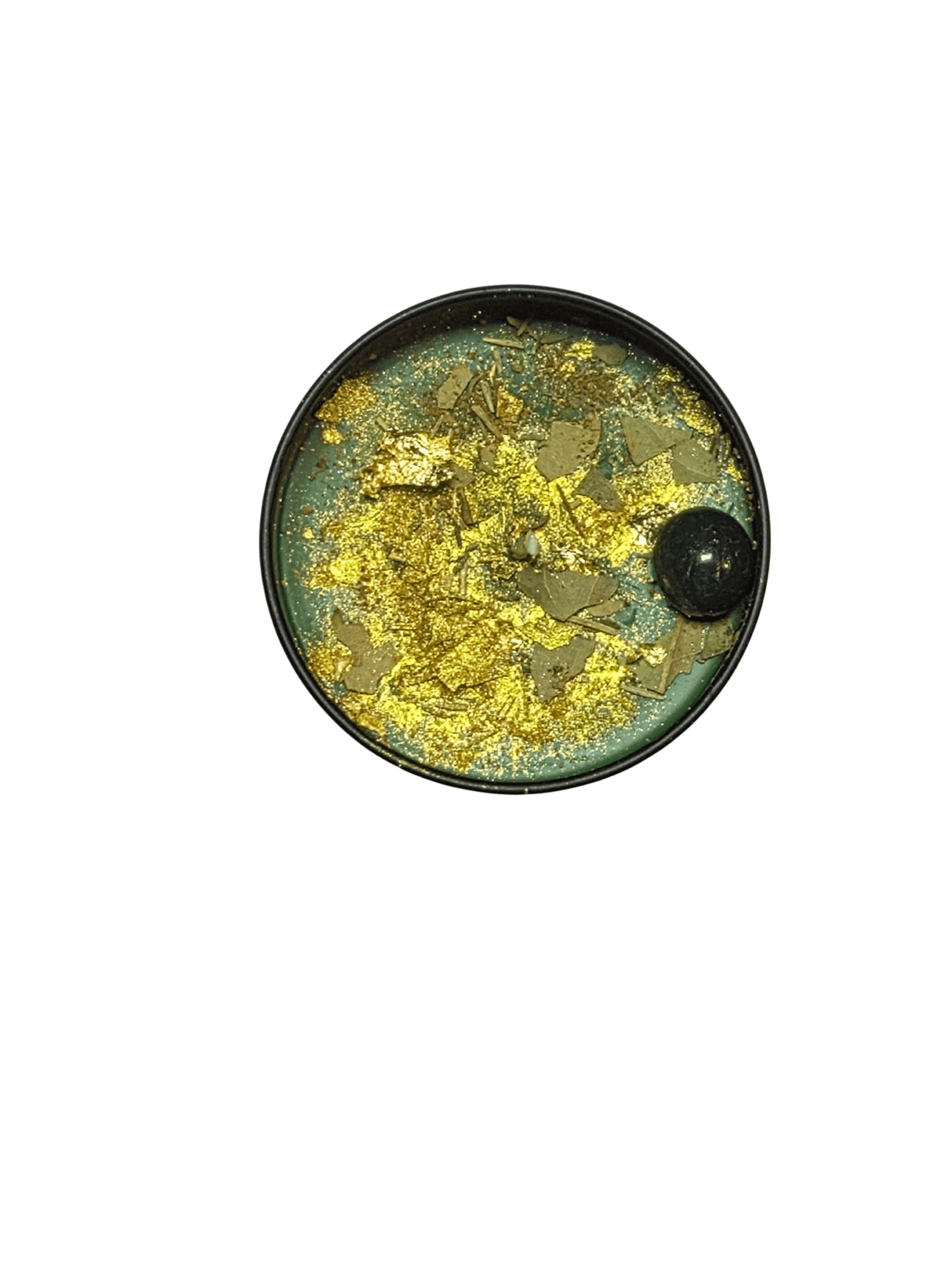 Each candle is infused with a carefully selected blend of herbs traditionally used to attract money and good fortune. We include real 24k gold powder and flakes to amplify intention, abundance, success, and prosperity. Cinnamon is used to support luck and financial flow, nutmeg is associated with money and good fortune, bay leaves are linked to wealth and success, basil supports prosperity, and mint is known for attracting wealth and luck.